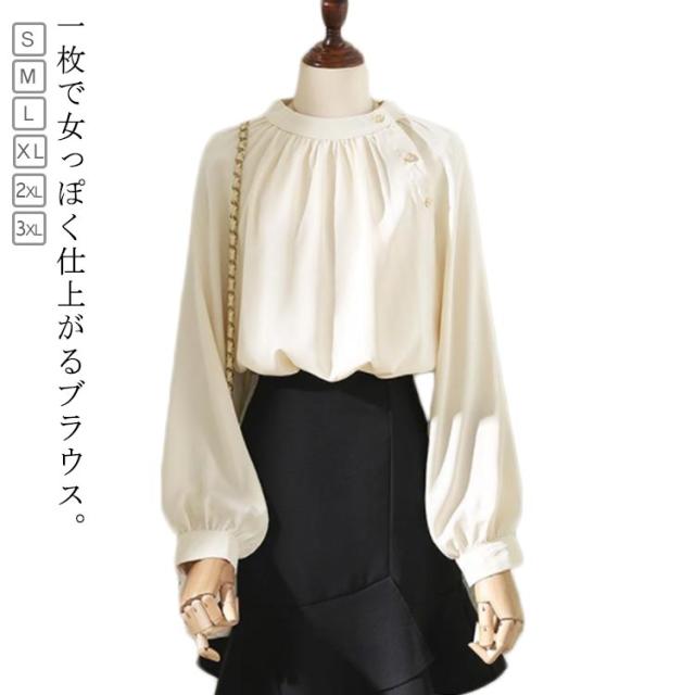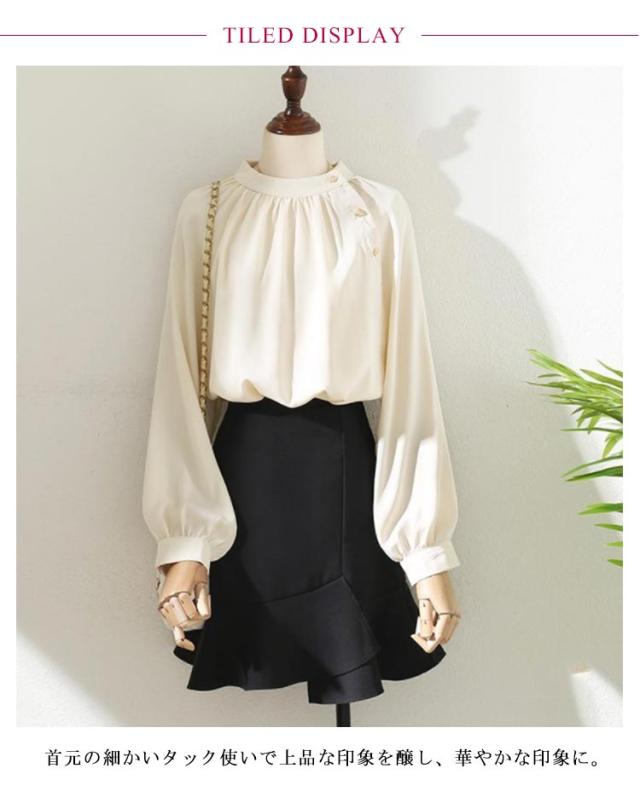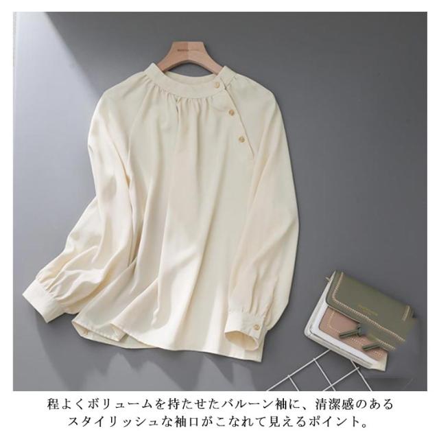 ブラウス バルーンスリーブ バルーン袖 バルーンブラウス タック 秋 クラシカル レディース 長袖 ボリューム袖 トップス 送料無料 ボダン オフィス キャリア 仕事 スーツ ママスーツ 長袖 シンプル オシャレ お洒落 可愛い 上品 フェミニン エレガント 春 秋