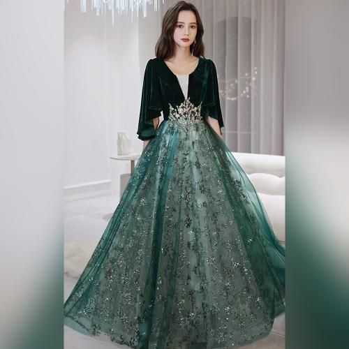 女心をくすぐるベルベットとチュールをドッキングさせたパーティードレス(キャバドレス・CABARETDRESS)スカート部分には重なった色違いのチュール生地にたっぷりのスパンコールが。
