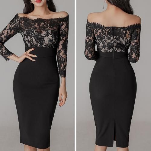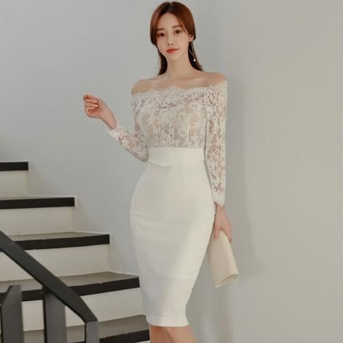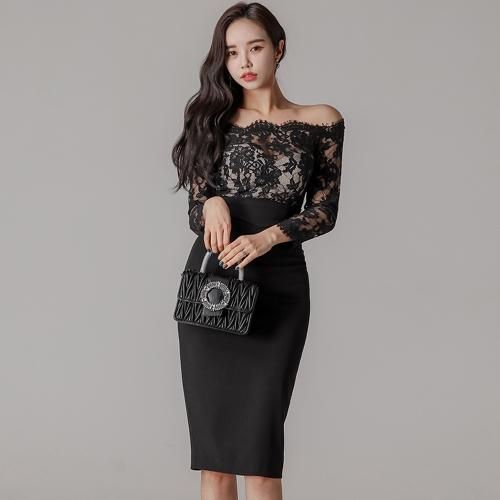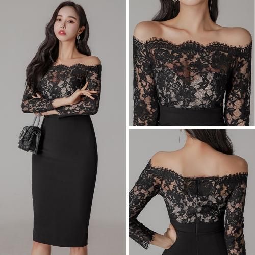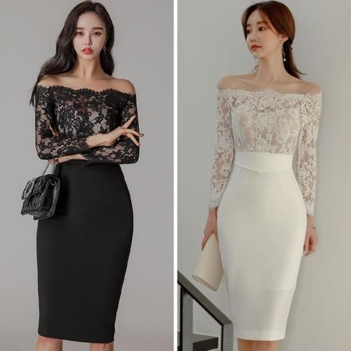 華やかなレースとタイトスカートがエレガントなワンピースドレス。