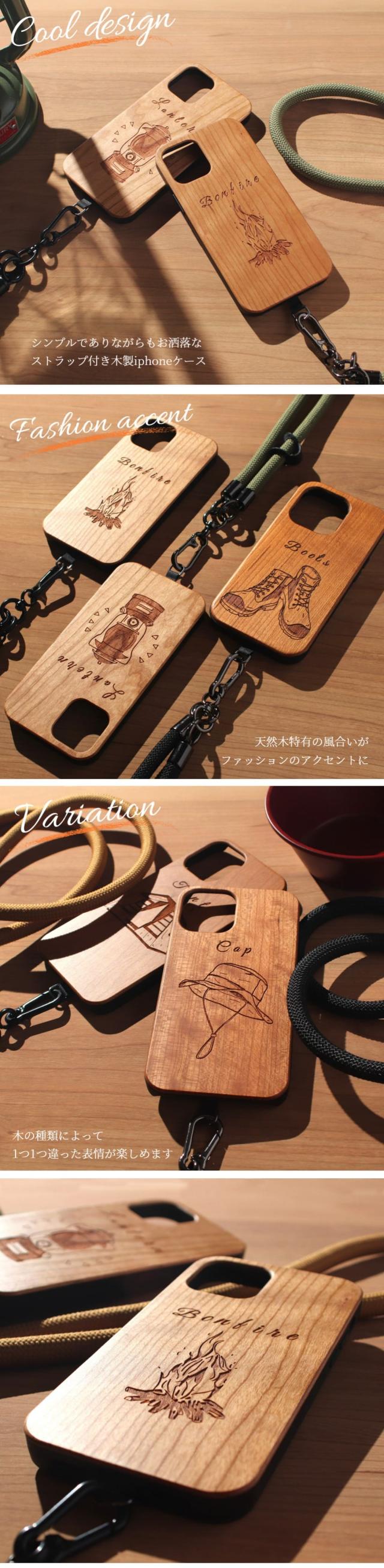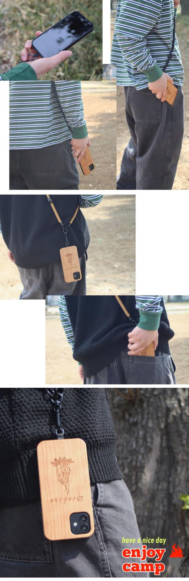 木製iphoneケースとショルダーストラップをセットにしたおしゃなiphoneケース