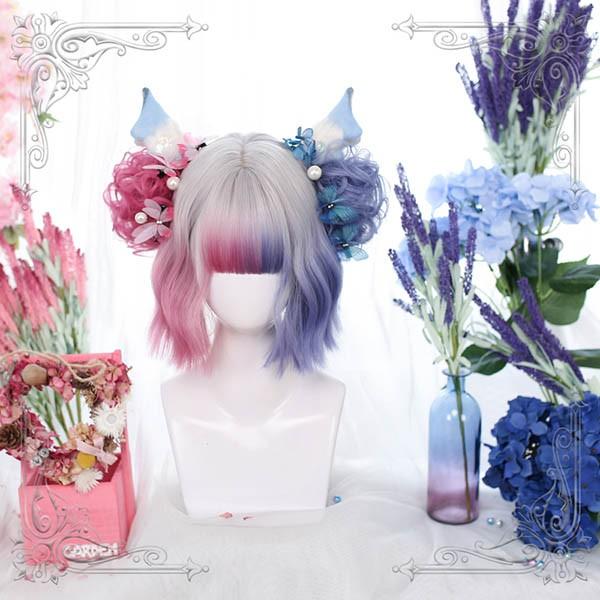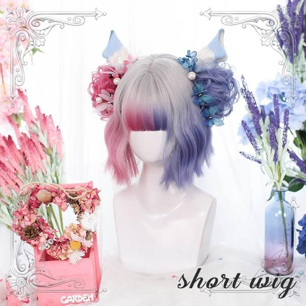 【レビュー投稿で+5%還元】ウィッグ グラデーション lolita レディース フルウィッグ 小顔効果抜群 短髪 ゆめ可愛い 原宿風 かつら 巻き毛 ぱっつん前髪 コスプレ ロリータ 可愛い パーティー ハロウィン コスチューム 仮装 変装 女装 イベント 文化祭 学園祭 演劇 舞台