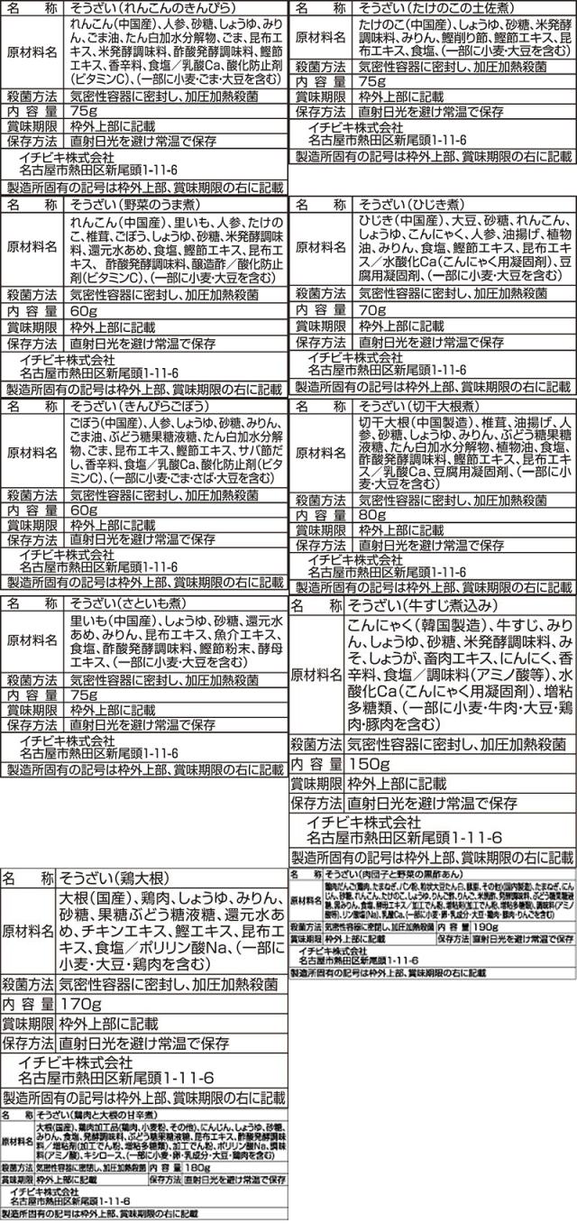![]() 当店のレトルト惣菜一覧はこちら | |||