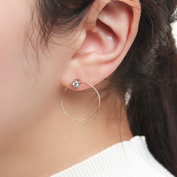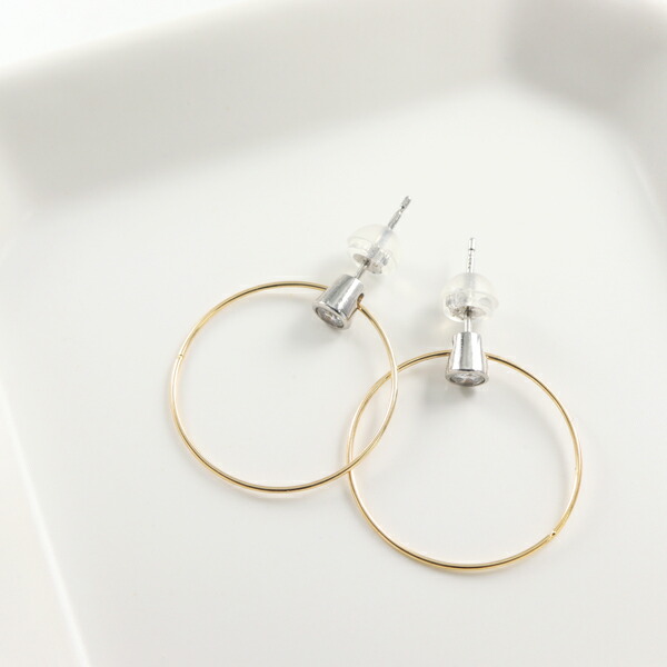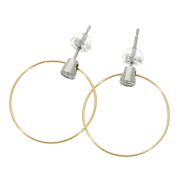 K18 ゴールド プラチナ ダイヤモンド サークル ピアス 2P 両耳用 18金 18k 金 ゴールドピアス スタッドピアス 地金 リング 丸 一粒ダイヤ アジアン