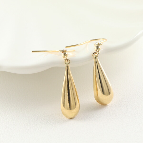 K18 ゴールド ドロップ ピアス 2P 両耳用 18金 18k 金 ゴールドピアス フックピアス 揺れる 地金 しずく 雫 涙 ティアドロップ はちみつ 蜂蜜 ハニー