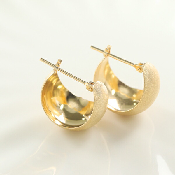K18 ゴールド スターダスト 甲丸 13mm フープピアス 2P 両耳用 18金 18k 金 ピアス ゴールドピアス リングピアス 地金 つや消し マット 月 シンプル