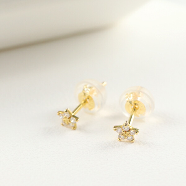 K18 ゴールド ダイヤモンド 星 ピアス 2P 両耳用 18金 18k 金 ゴールドピアス スタッドピアス スター パヴェ パヴェダイヤ 天然ダイヤ かわいい