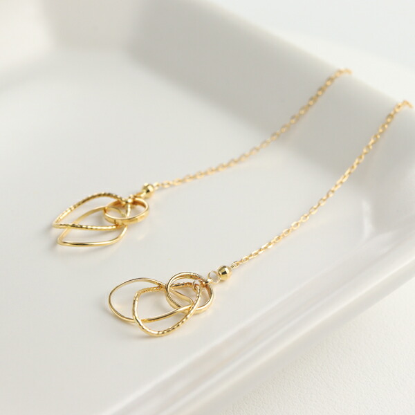 K18 ゴールド 幾何学 アメリカンピアス 2P 両耳用 18金 18k 金 ピアス ゴールドピアス チェーンピアス ロングピアス 揺れる 地金 華やか 豪華 大人