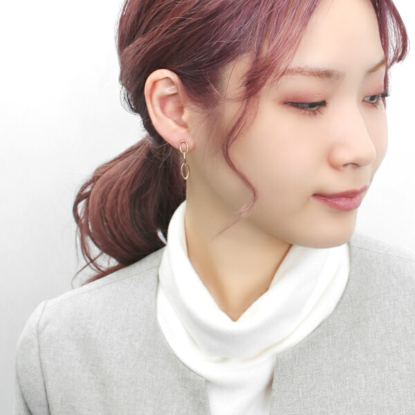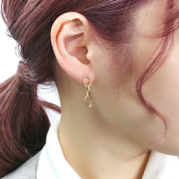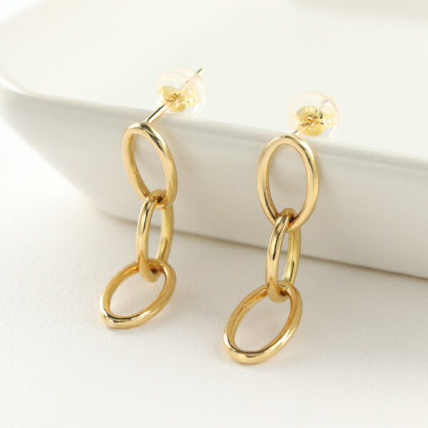 K18 ゴールド ピアス 2P 両耳用 18金 18k 金 ゴールドピアス スタッドピアス ロングピアス 揺れる 輪っか リング くさり 鎖 チェーン 地金 華やか