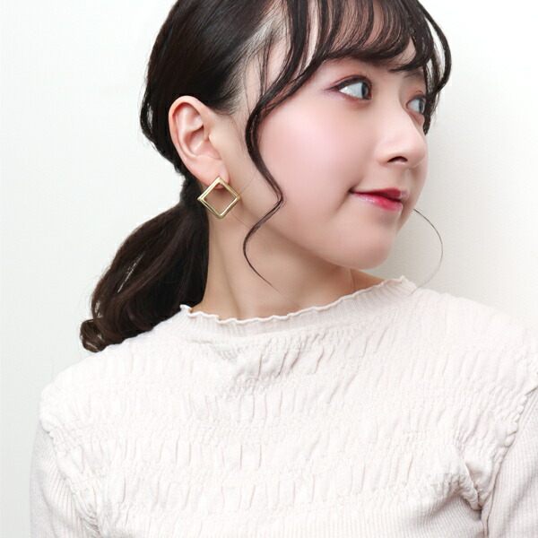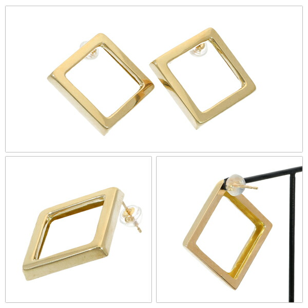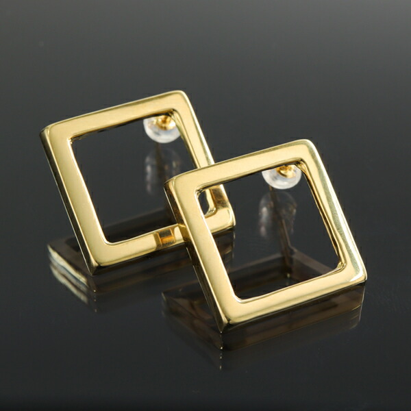 K18 ゴールド スクエア ピアス 2P 両耳用 18金 18k 金 ゴールドピアス スタッドピアス 地金 シルエット 記号 正方形 四角形 存在感 大きめ 大きい