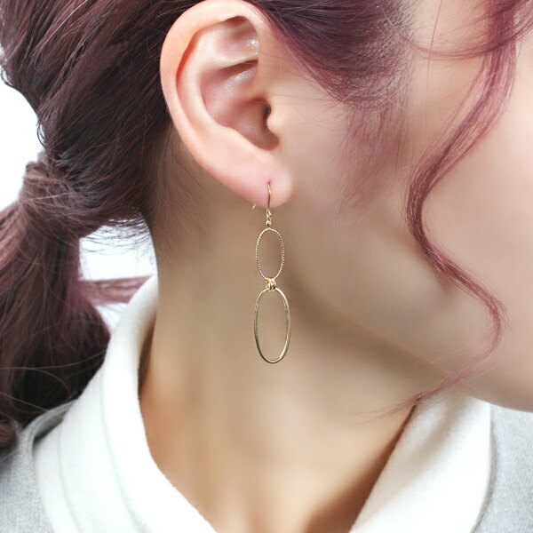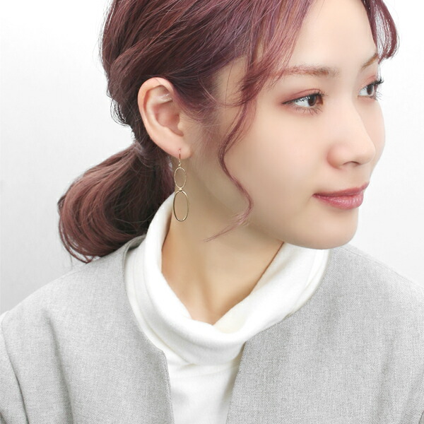 K18 ゴールド ピアス 2P 両耳用 18金 18k 金 ゴールドピアス フックピアス ロングピアス 揺れる 輪っか リング チェーン 地金 華やか 豪華 大人 上品