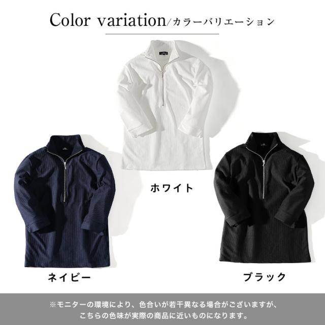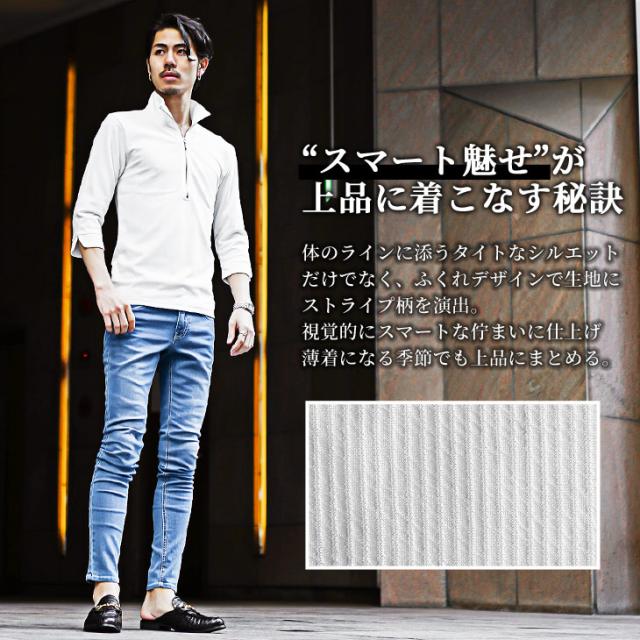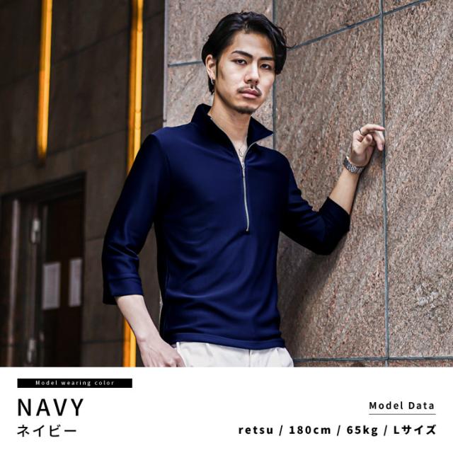 七分袖 ポロシャツ メンズ 7分袖 シャツ メンズ ハーフジップ ポロシャツ メンズ ジップアップ 総柄 シャツ 立ち襟 シャツ ストライプ 無地 白 黒 ホワイト ブラック ネイビー M L お兄系 オラオラ系 ちょいワル 春服 春 春新作