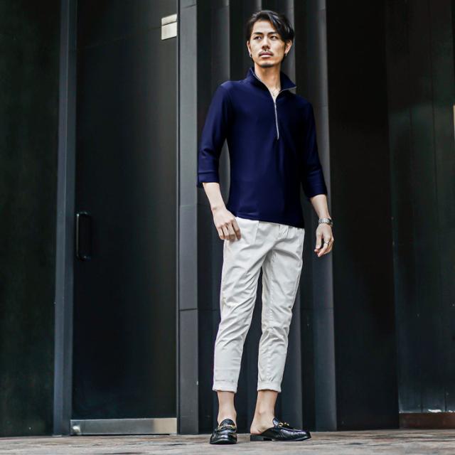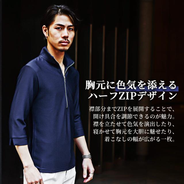 色気を漂わせるオトナの装い『7分袖ハーフジップポロシャツ』【7分袖ハーフジップポロシャツ】■Design/デザインオトナの色気を醸し出す7分袖のハーフZIPポロシャツ。襟まで展開されたハーフZIPで首元を自由に演出できるのが魅力。スマートなサイジングでありながら伸縮性があるため快適な着用が可能。無駄のないシルエットで色気を漂わせオトナの魅力をみせつけろ。■Material/素材感ポリエステルを使用したさらりとした生地感で、伸縮性があるためストレス感のない着用を実現。