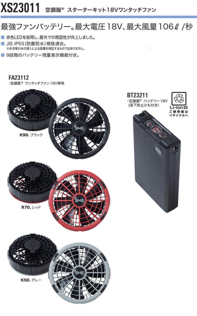 空調服 18Vバッテリー・ワンタッチファンセット XS23011 株式会社空調服 小物