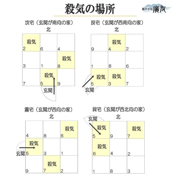 ・玄関が南向き —殺気は西北・南・東の部屋
