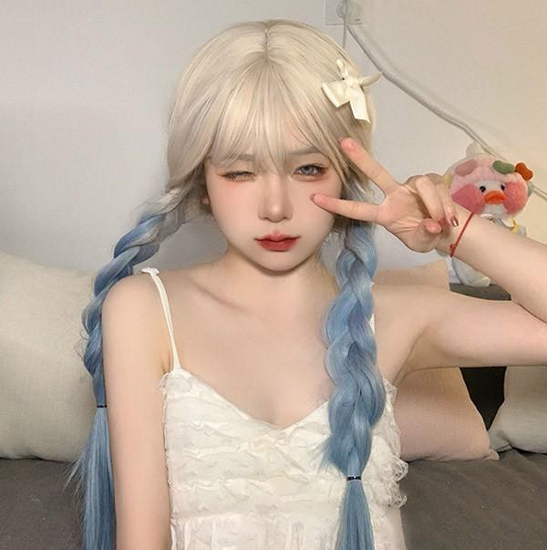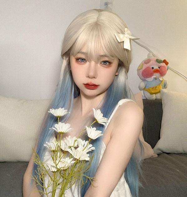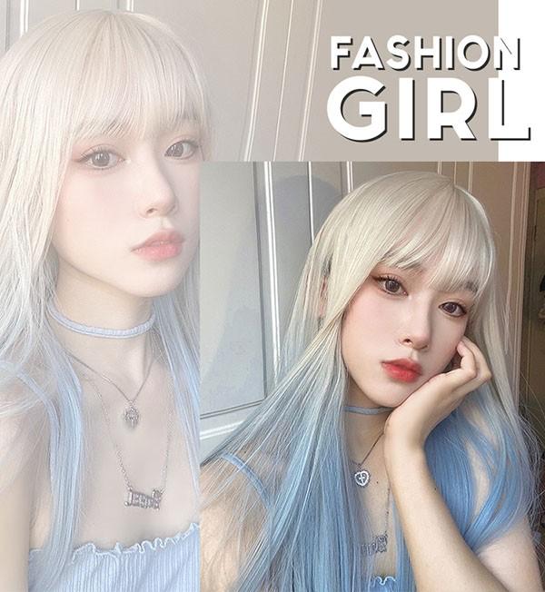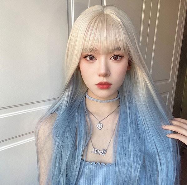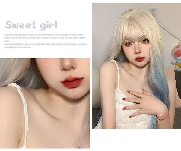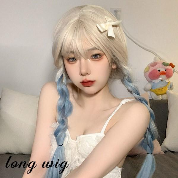 【レビュー投稿で+5%還元】ロングウィッグ グラデーション レディース 小顔 かつら フルウィッグ ブルー ロング ストレート ぱっつん前髪 ロリータ 前髪あり ハロウィン 原宿風 コスプレ コスチューム 仮装 大人用 普段使い 文化祭 イベント 学園祭 演劇 舞台 学芸会