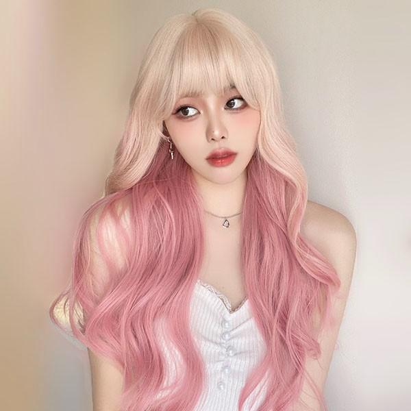 【レビュー投稿で+5%還元】ロングウィッグ グラデーションウィッグ レディース 小顔 かつら フルウィッグ ピンク 巻き毛 ぱっつん前髪 ロリータ 前髪あり ハロウィン 原宿風 コスプレ 可愛い コスチューム 仮装 大人用 普段使い 文化祭 イベント 学園祭 演劇 舞台 学芸会