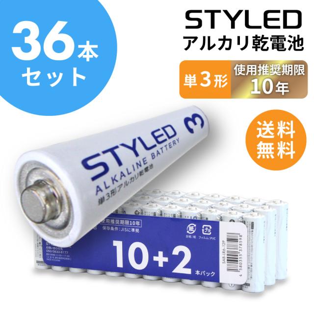 【メール便送料無料】乾電池 アルカリ乾電池 単3 送料無料 電池 単3形 36本セット STYLED