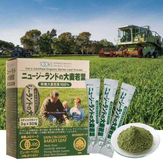 ソーキ ニュージーランドの大麦若葉 3g×30包 青汁 分包 有機JAS ティムさん 食物繊維 葉酸
