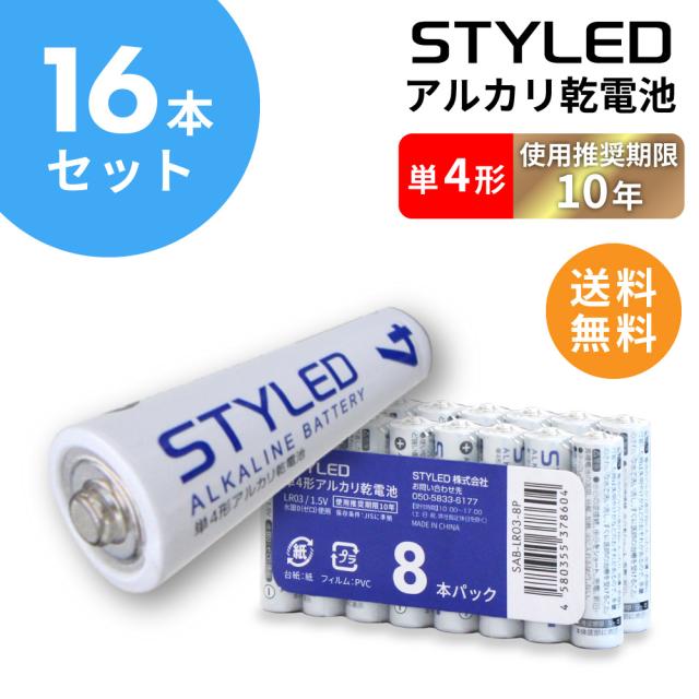 【メール便送料無料】乾電池 アルカリ乾電池 単4 送料無料 電池 単4形 16本セット STYLED