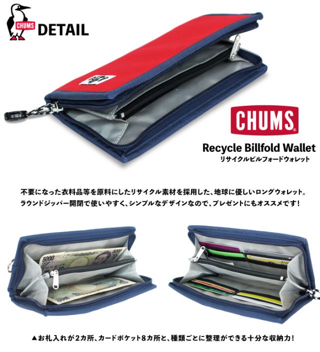 CHUMS チャムス リサイクルビルフォルドウォレット 長財布 ロングウォレット カード入れ 小銭入れ メンズ レディース CH60-3568 メール便対応