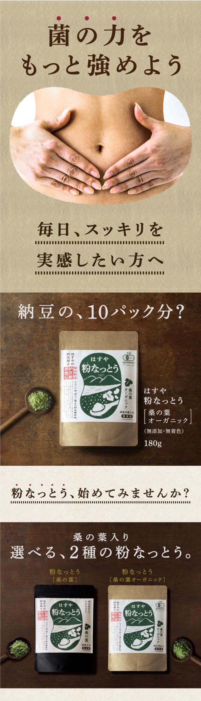 【メール便送料無料】粉なっとう[桑の葉オーガニック]180g 腸活に大人気の納豆菌とダイエッターに人気の桑の葉のダブルパワー オーガニック/ポリアミン/DNJ