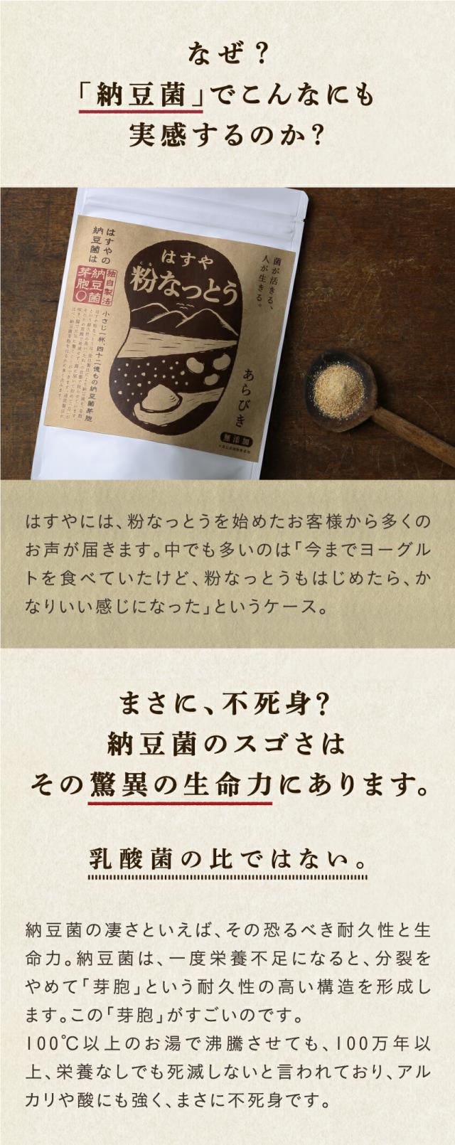 【メール便 送料無料】 粉なっとう[あらびき] 84g たった小さじ1杯に納豆10パック分の納豆菌が生きている健康/サプリメント/粉納豆/納豆キナーゼ/ポリアミン サポニン/#はすや
