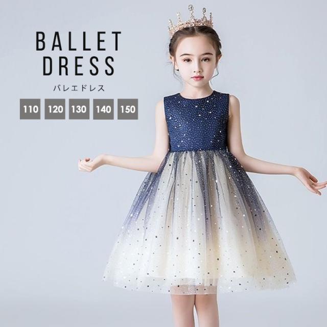 春新作 バレエ ドレス 子供用 キッズ 女の子 パーティードレス 子供ドレス 白 おしゃれ かわいい フォーマル 発表会 上品 ワンピース ミディアム丈 グラデーション バイカラー 星 月 スパンコール 110 120 130 140 150 タンクトップ ノースリーブ 透け感 裏地付き