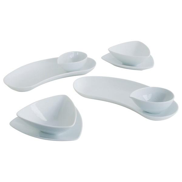 * セット内容:デルタプレート(15.5×15.5×2.5cm)・デルタボウル(12.5×12.5×5cm)・クレセントプレート(11.5×28×2.5cm)・ソースポット(7.5×10.5×4.5cm)×各2