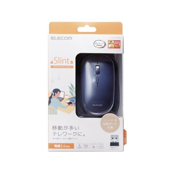 M-TM10DBBU BlueLEDマウス 薄型 無線 4ボタン ポーチ付 ブルー ELECOM