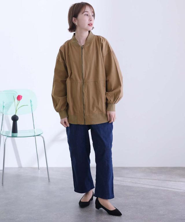トレンドのパフスリーブとヒップラインを隠してくれるロング丈のMA−1です。