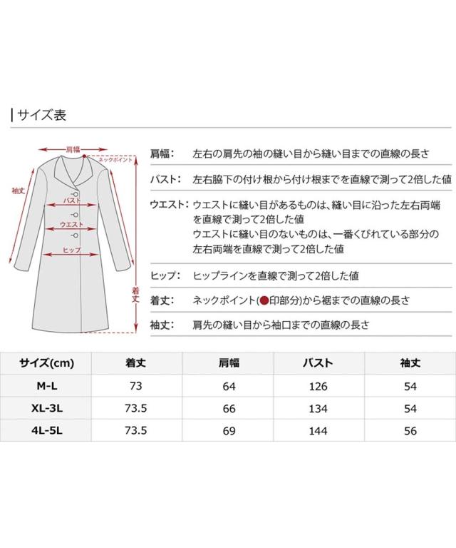 4L−5L/着丈73.5|肩幅69|身幅72|袖丈56