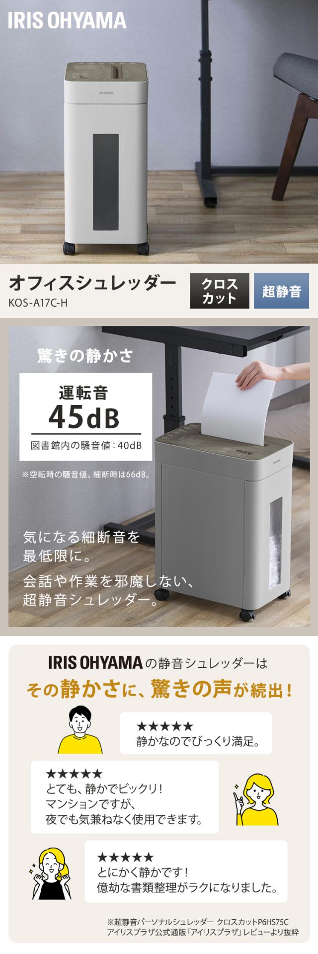 オフィスシュレッダー KOS-A17C-H グレー シュレッダー 静音 静か 細断 オフィス 会社 家庭 リモートワーク クロスカット 大容量 簡単操作 キャスター付き アイリスオーヤマ 送料無料 安心延長保証対象