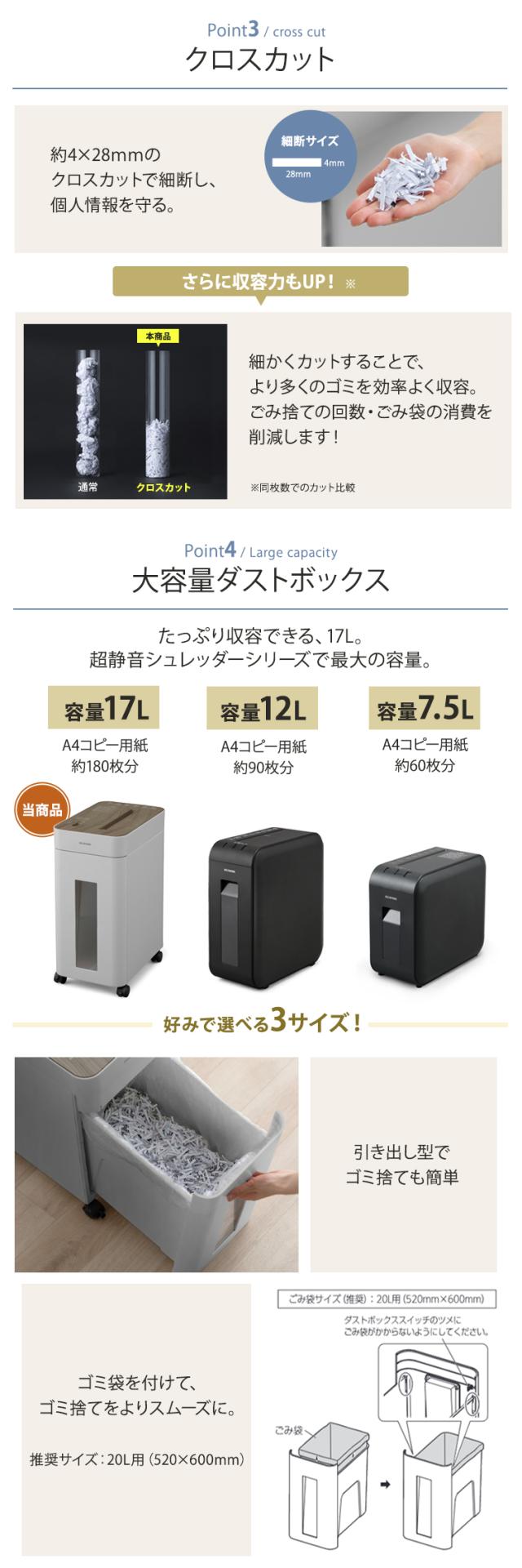 家庭でもオフィスでも使いやすい超静音モデルのシュレッダーです。