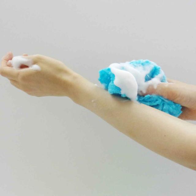 極細繊維66ナイロンと空気を含んだ2重構造で、素早くきめ細やかな泡をつくります。泡のボディソープもお使い頂けます。