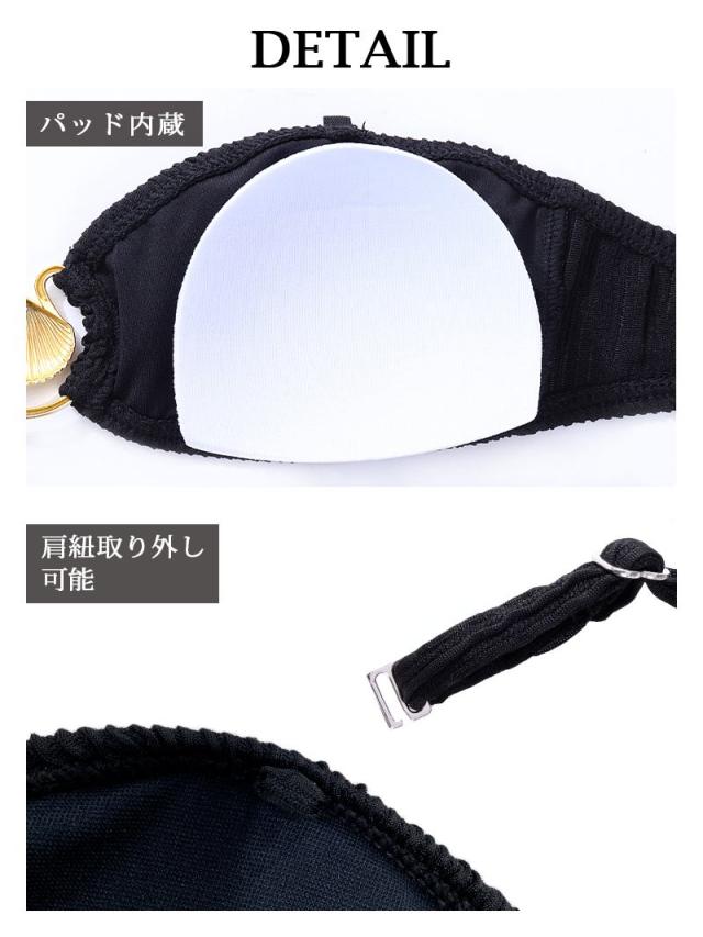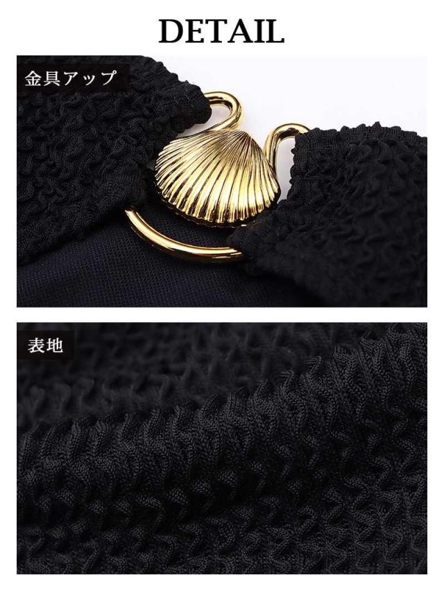 ☆大人女性の魅力を引き出すオールブラックにゴールド形が効いたセクシーなレディース水着です。