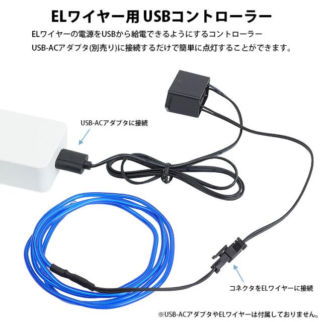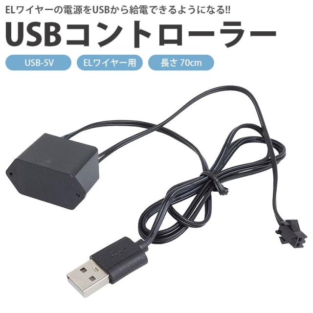 ELワイヤー用 USB コントローラー 長さ 70cm USB 電源 給電 ケーブル 5V PR-EL-USB5V【メール便 送料無料】