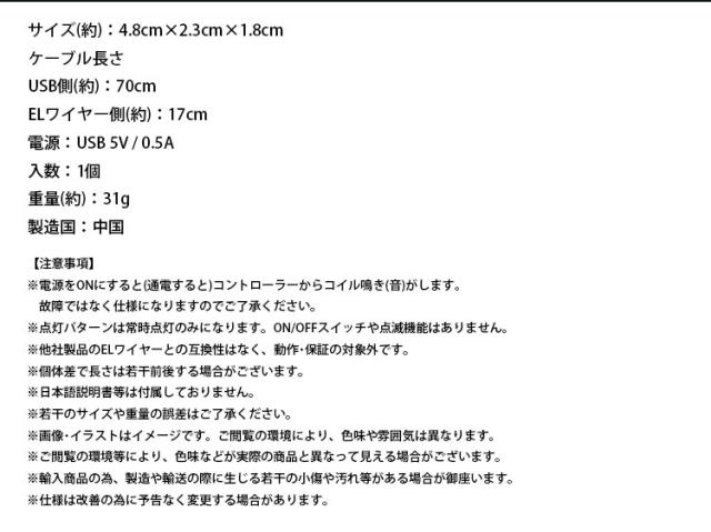 ※USB-ACアダプタやELワイヤーは付属しておりません。