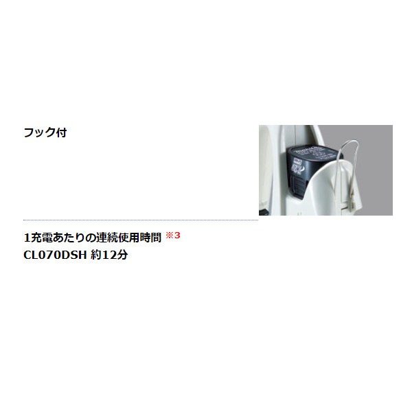 | 付属品 | ノズル・ストレートパイプ・サッシ(すきま)用ノズル、充電器、バッテリ(BL7015) |