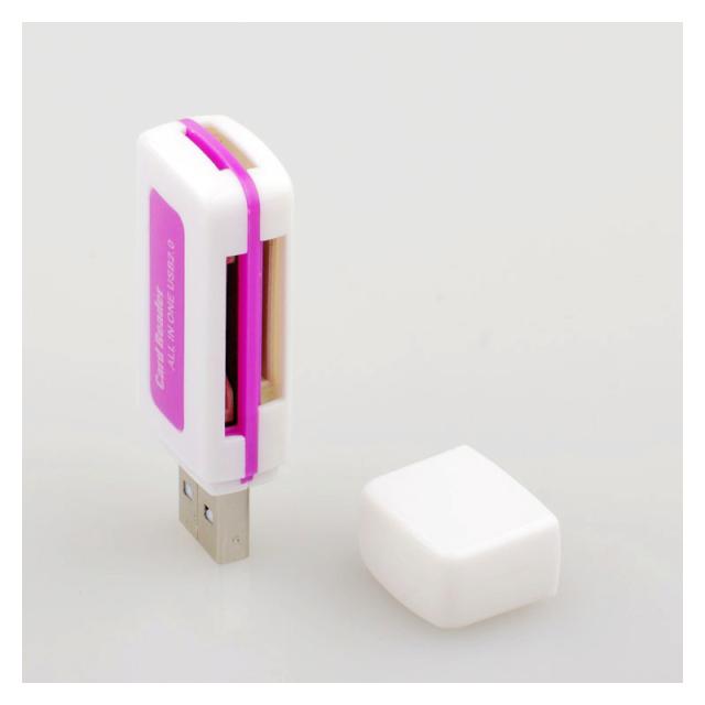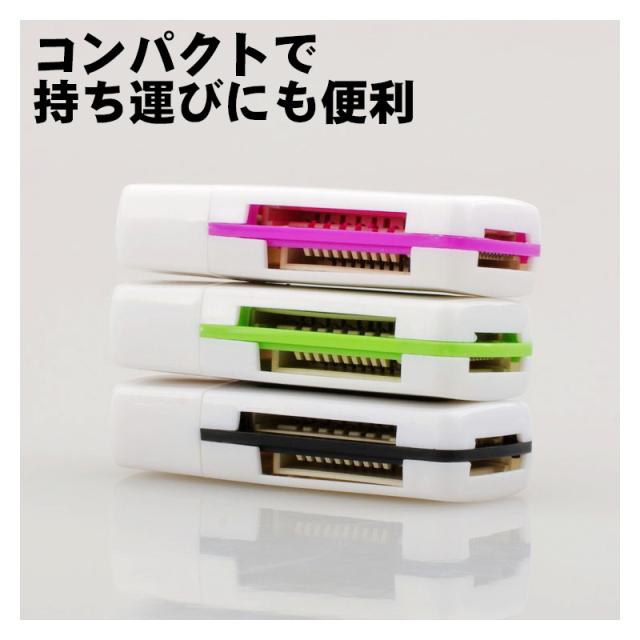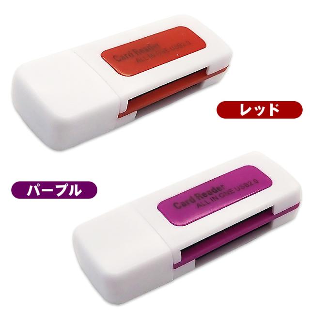 4in1 OTGカードリーダー USB2.0 双方向転送対応 4スロット搭載 SDカード MSカード M2カード Micro SD TFカード対応 カメラリーダー データ転送 軽量 コンパクト 持ち運び 変換コネクター レッド パープル 【送料無料】