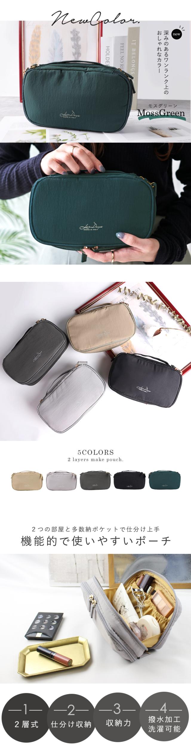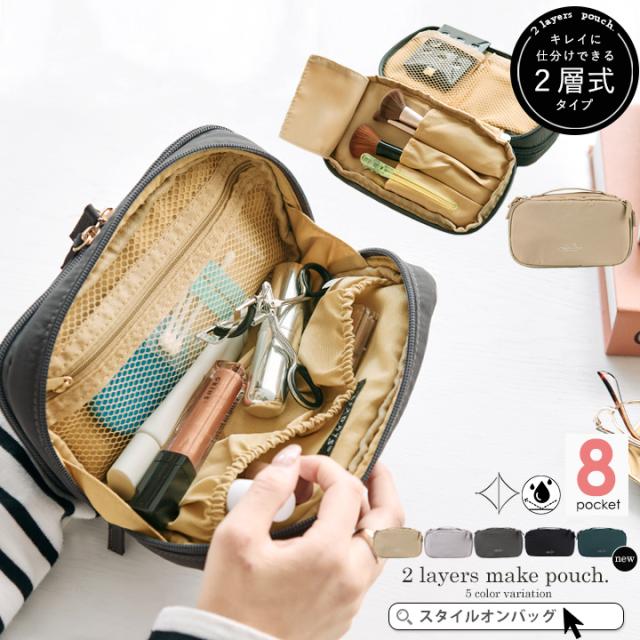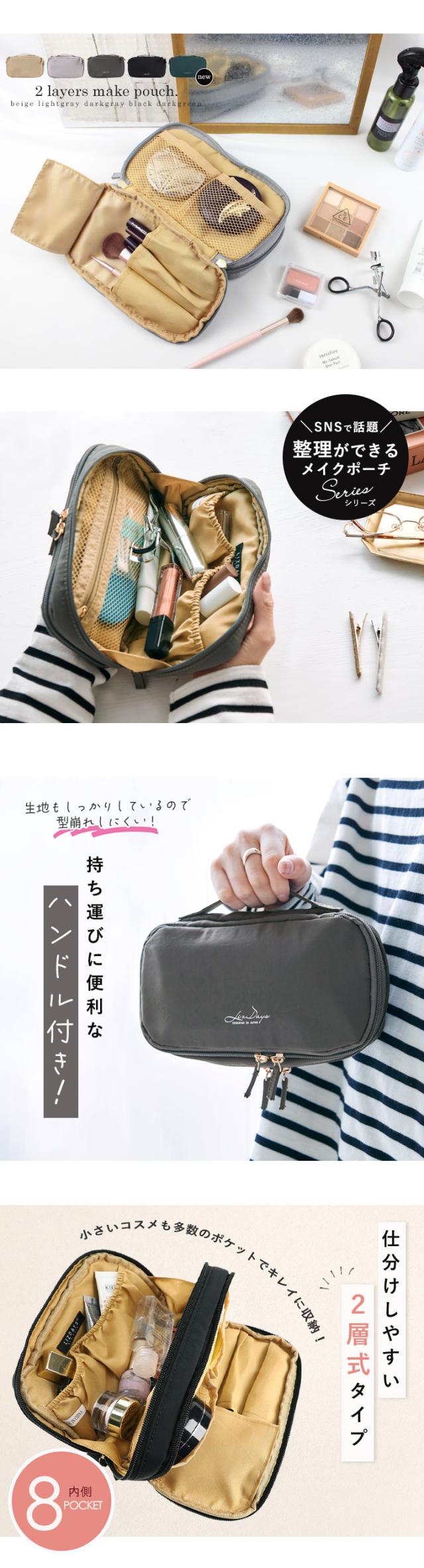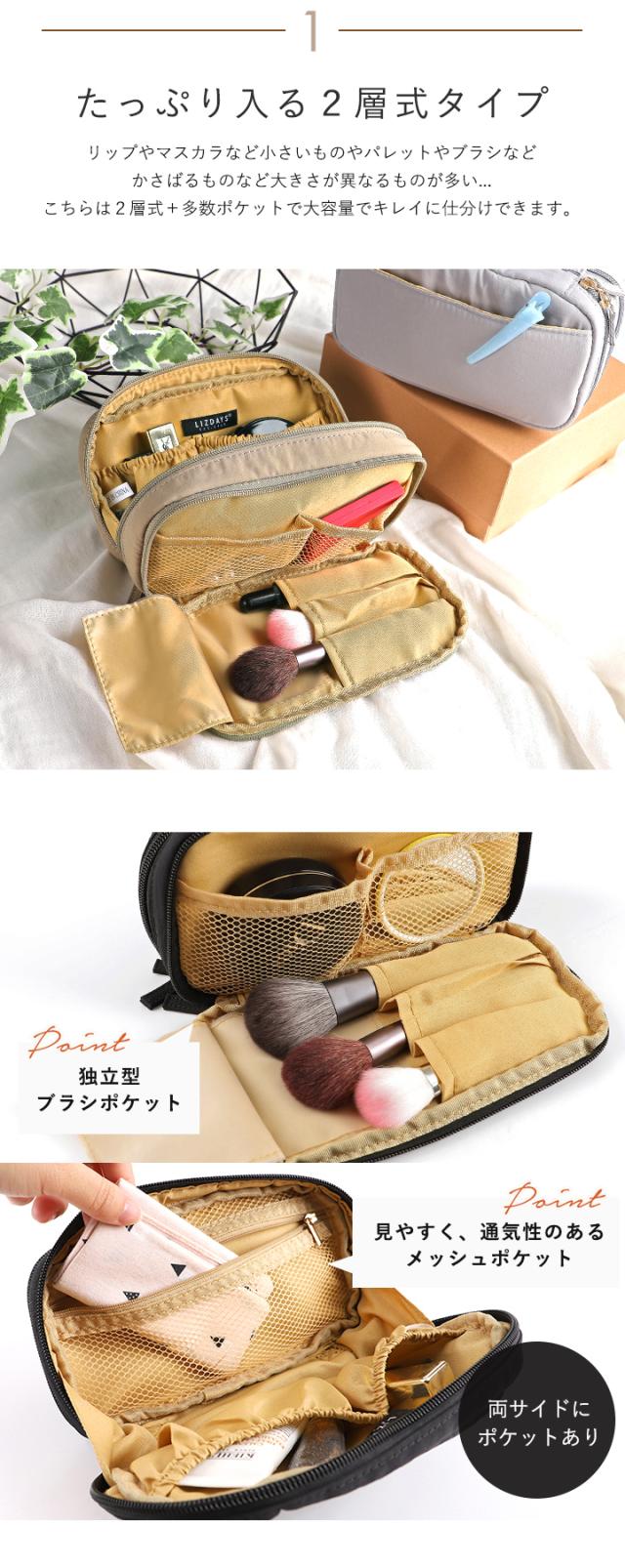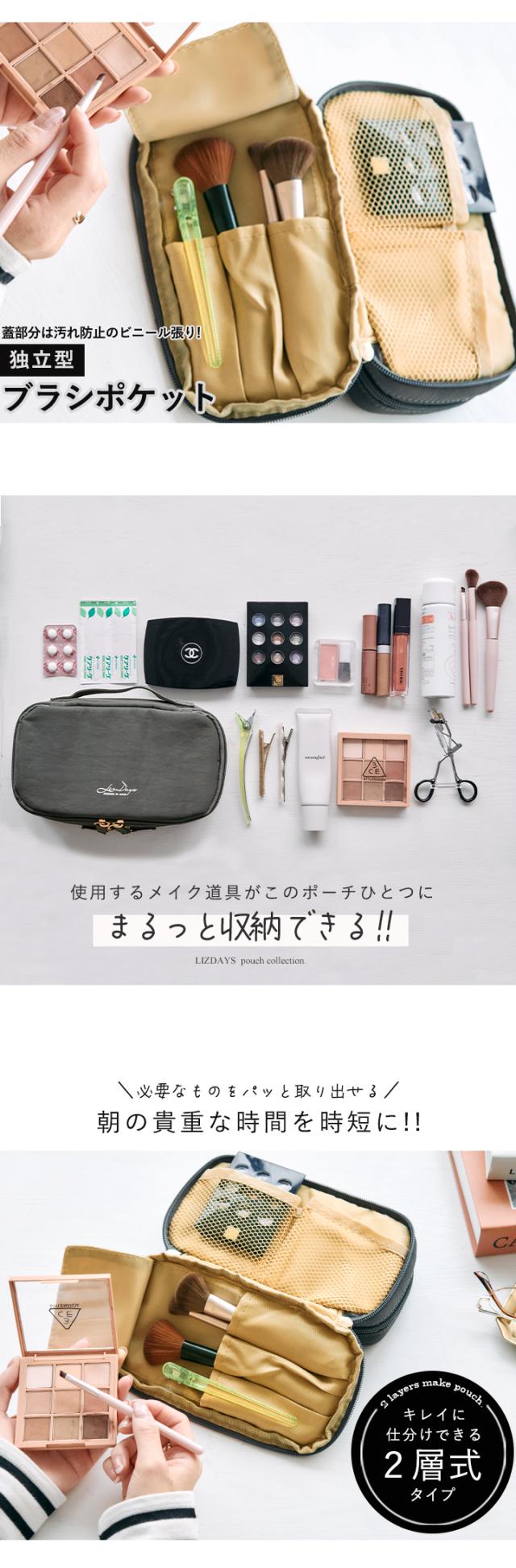 LIZDAYS 化粧ポーチ 横型 縦型ポケット 2層構造 ブラシポケット ポーチ小物入れ 自立型 メイクポーチ ポーチ 小物入れ クッション入り トラベルポーチ 旅行 洗える メイク道具 機能的 収納 整理 ポケット シンプル オフィス デイリー【映画・ドラマ使用】【lz-49807】