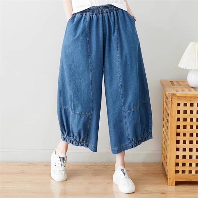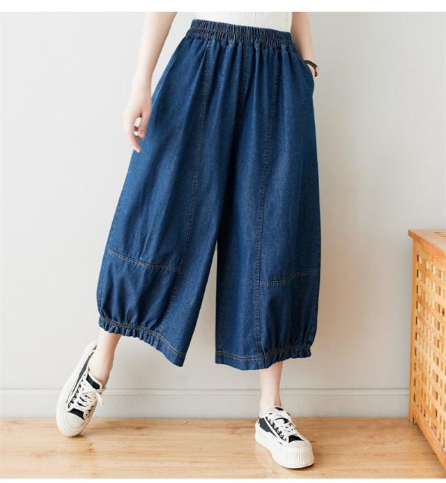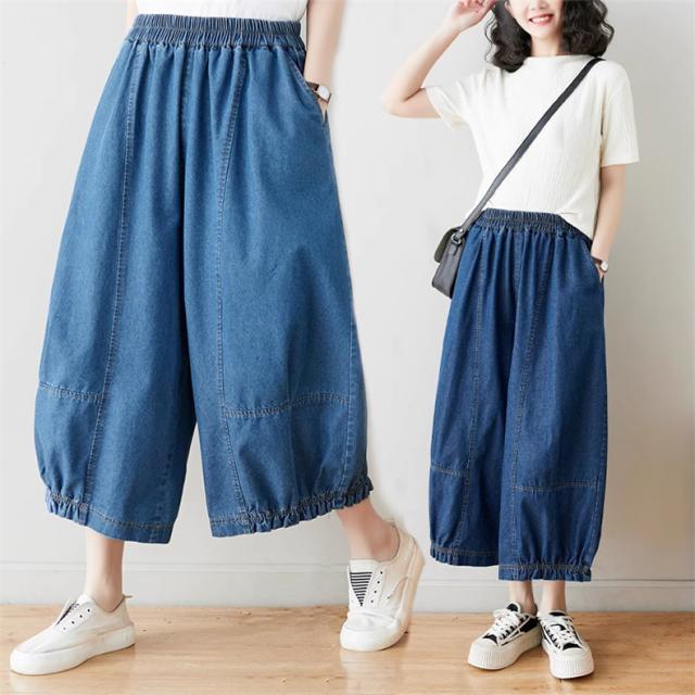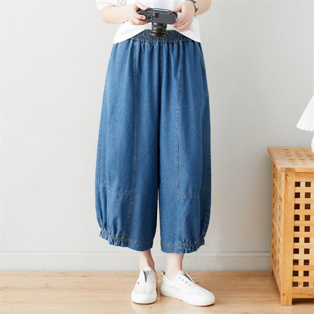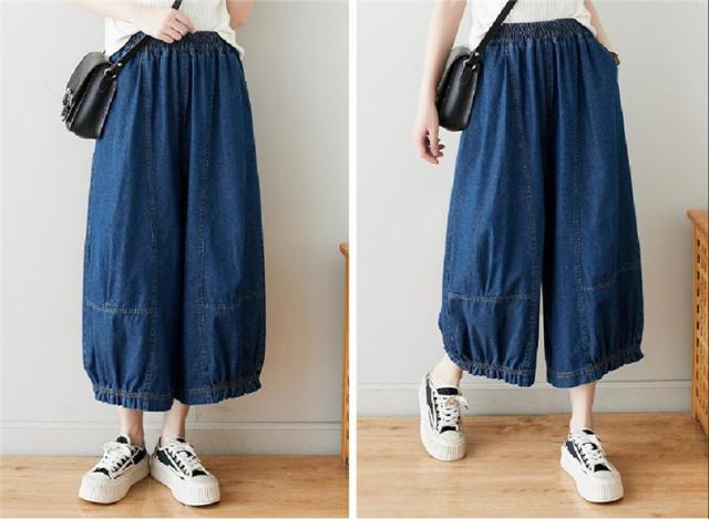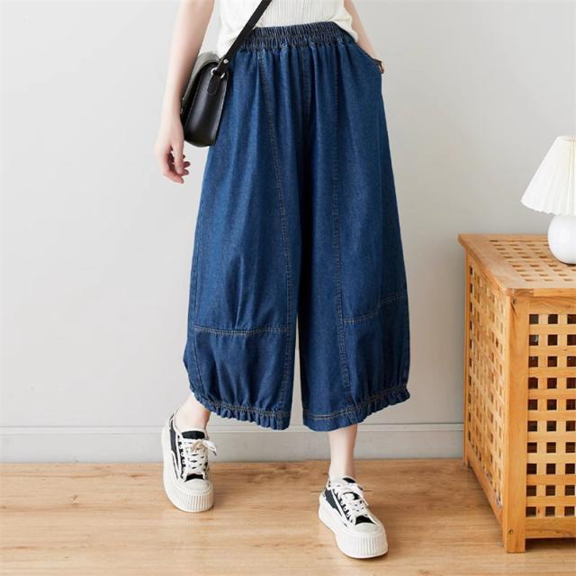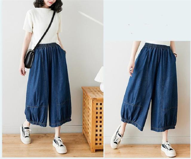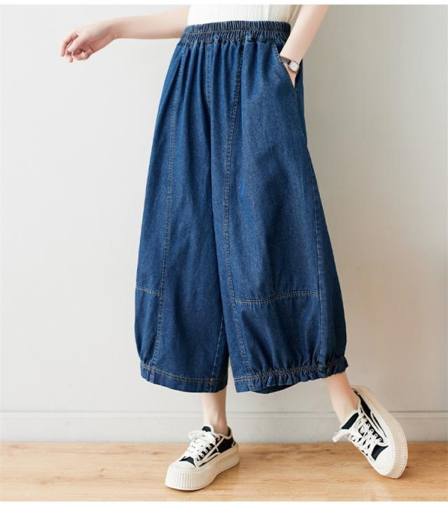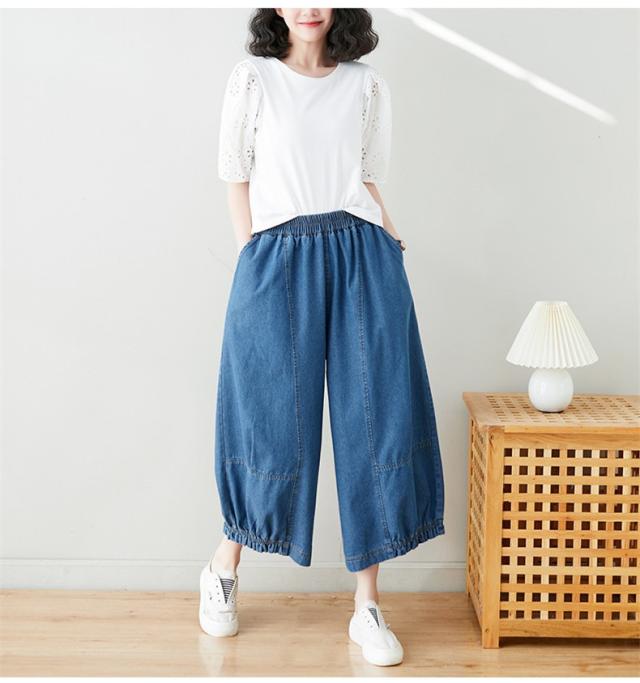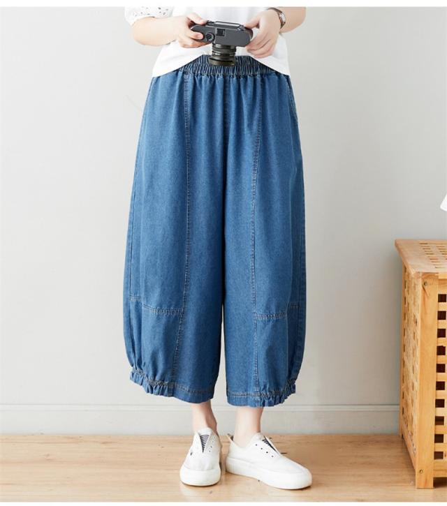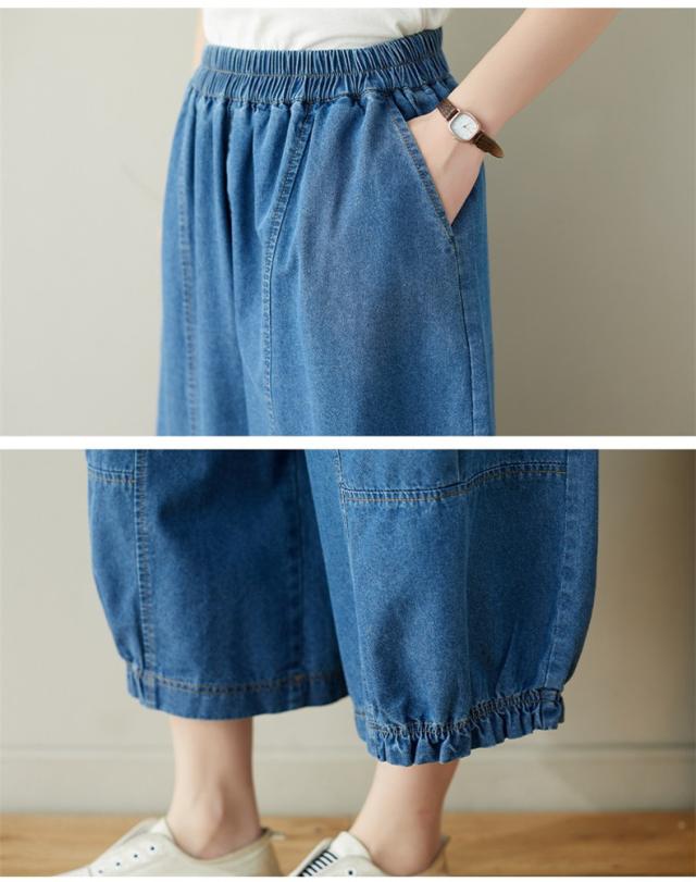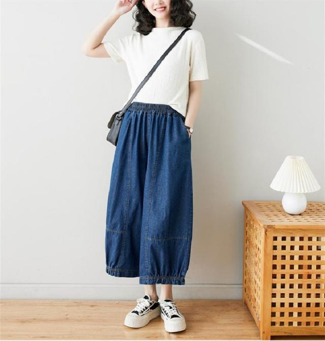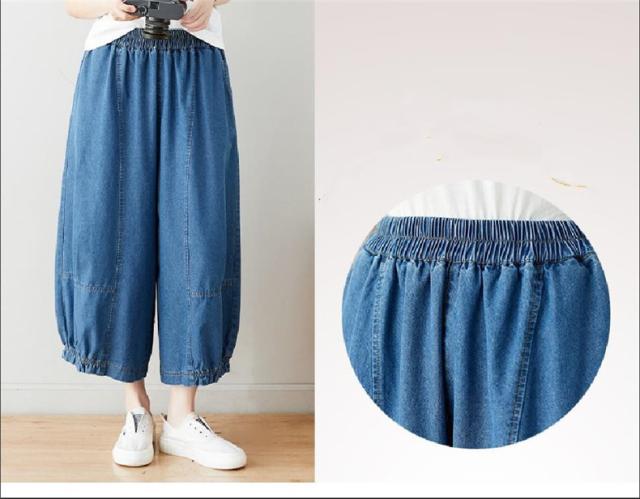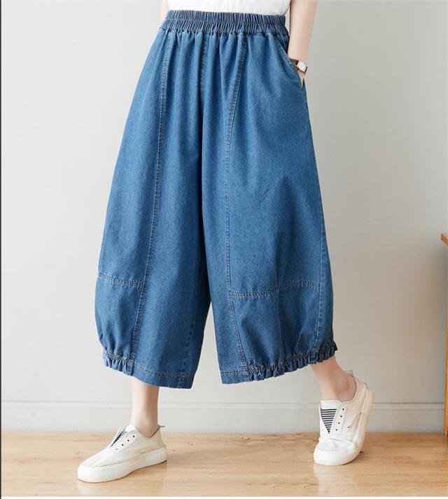 サルエルパンツ デニムパンツ サーカスパンツ風 ウエストゴム Gパン ガウチョ ワイドパンツ お洒落 ゆったりシルエット カジュアル