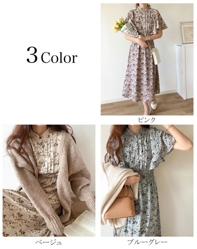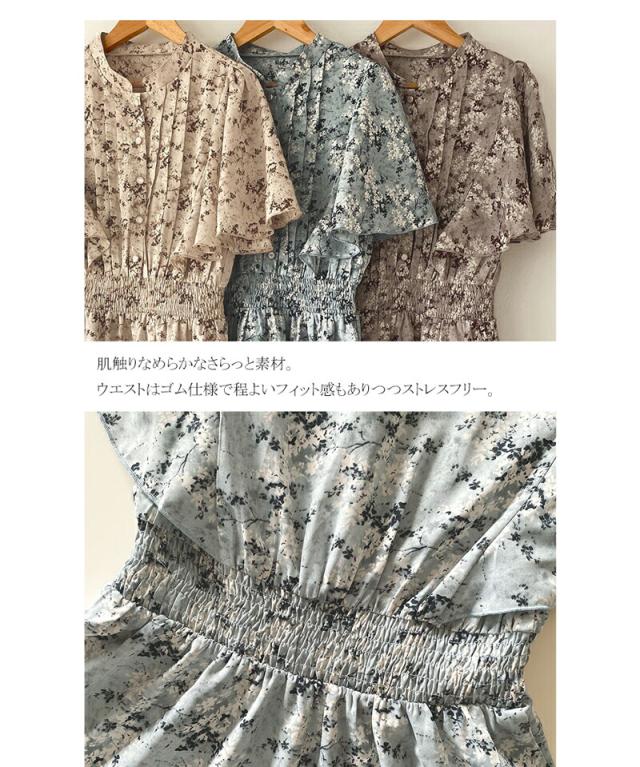 冬新作 クラシカルエルフ mily bilet ワンピース レディース レトロ 小花柄 ボリューム フレア袖 軽やか さらっと 肌触り ゆったり ウエストゴム たっぷり ギャザー スタイルアップ ロング丈 大きいサイズ 2023ss mi1139018