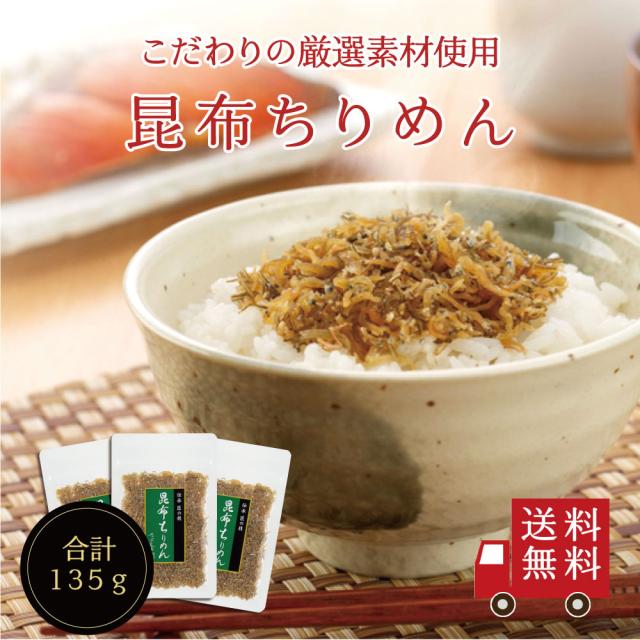 【送料無料】昆布ちりめん45g×3個セット 不二の昆布 メール便 つくだ煮 佃煮 ちりめん佃煮 ふりかけ お弁当 おにぎり おうちごはん おかず 米 お米 お土産 プレゼント