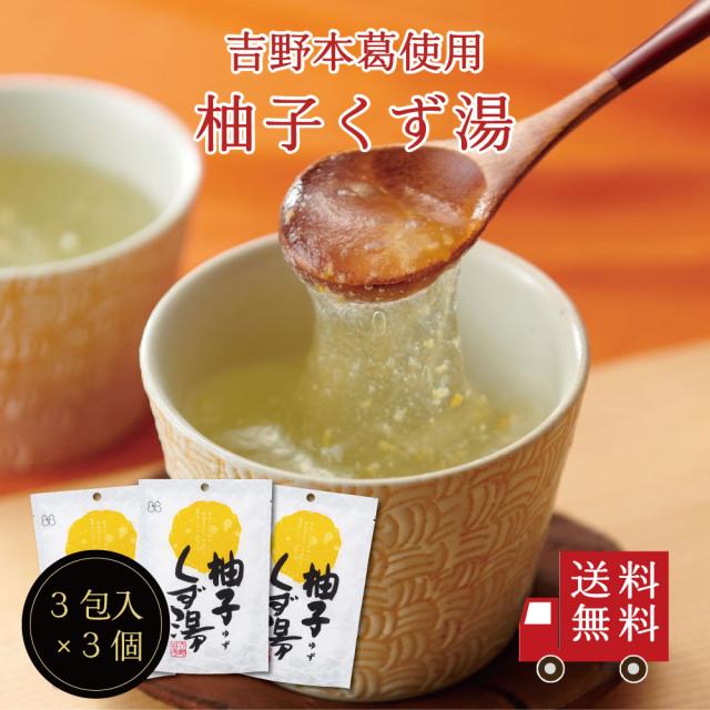 【送料無料】柚子くず湯SP(23g×3包) 3個セット スイーツ デザート 粉末飲料 お菓子 和菓子 ゆず 吉野本葛 葛 お試し おうち時間 プレゼント 手土産 お取り寄せグルメ メール便 ポスト投函