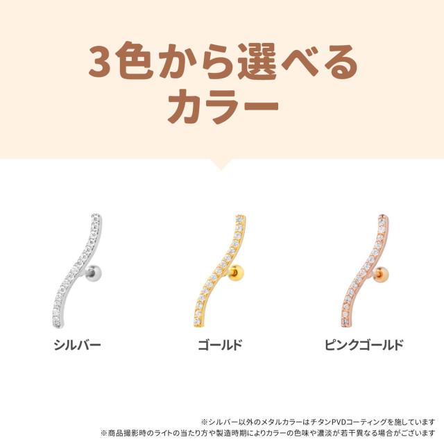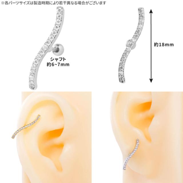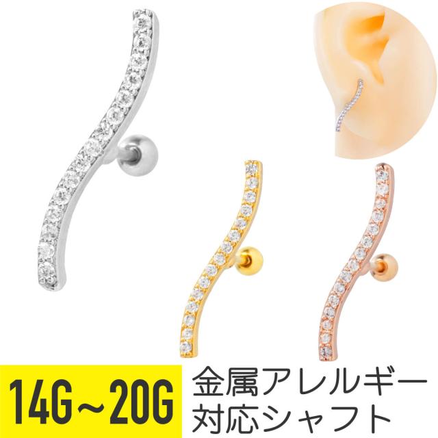 ウェーブ ライン ジュエル ストレートバーベル 14G 16G 18G 20G サージカルステンレス ヘリックス 軟骨ピアス ボディピアス ウェイブ