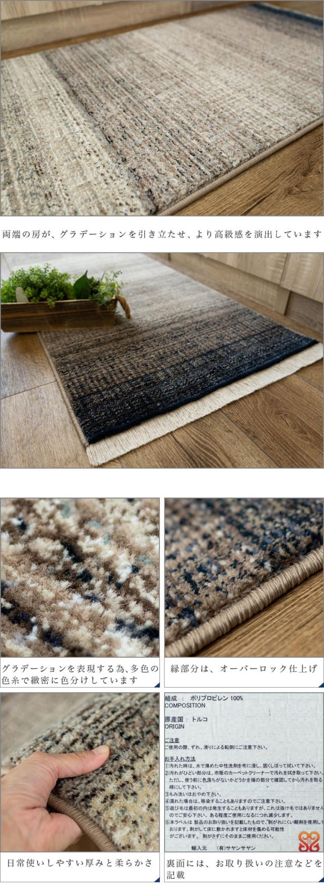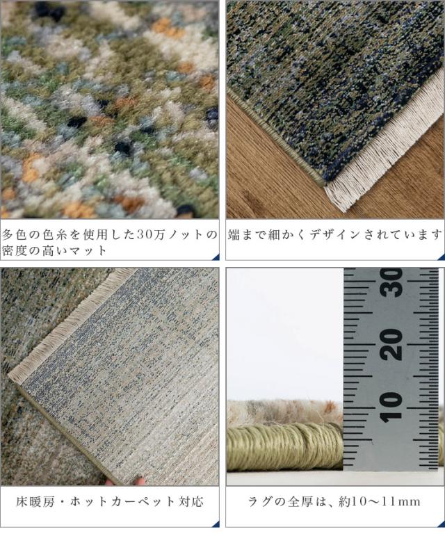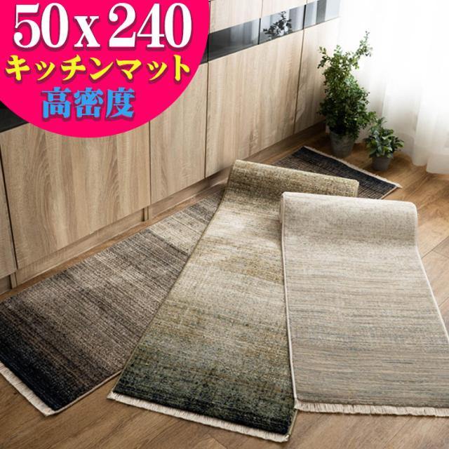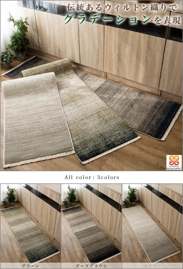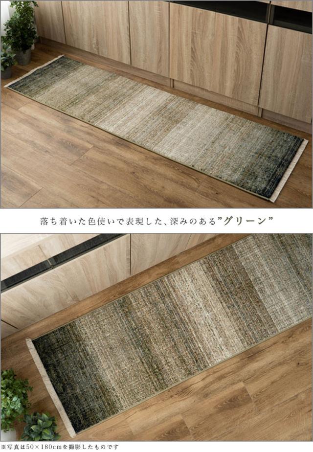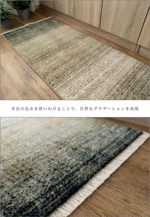キッチンマット グラデーション 50×240 cm ラグ 30万 ノット ウィルトン 織り グリーン ダークブラウン ネイビー ホワイト 高級感 カジュアル ギャベ ヴィンテージ カーペット おしゃれ ラグカーペット ラグマット アクセントラグ マット 絨毯 じゅうたん 送料無料