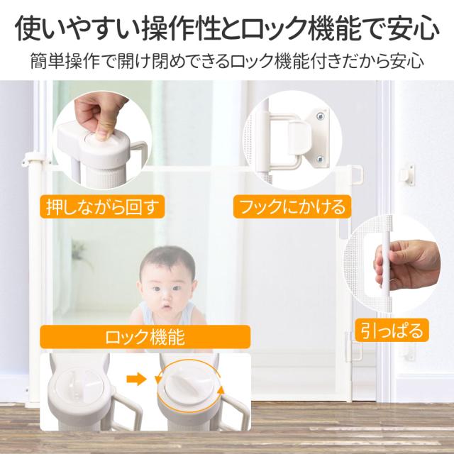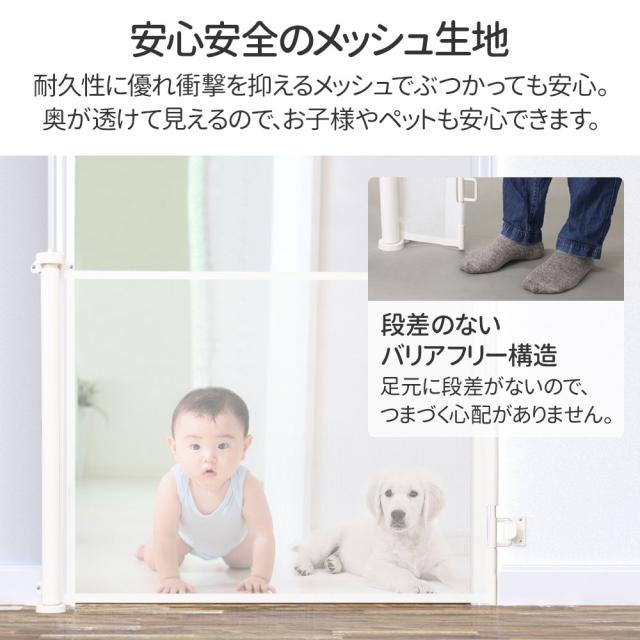 ベビーゲート ペットゲート 階段上 柵 ワイド ペットフェンス フェンス メッシュ ロールタイプ セーフティゲート ゲート ホワイト ブラック グレー