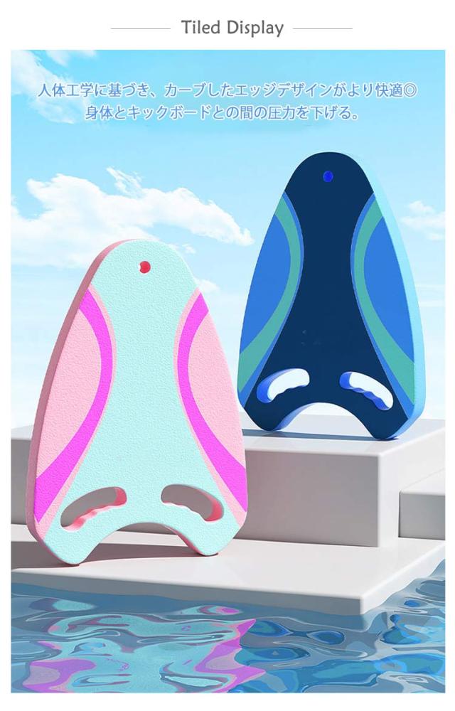 | 子どもから大人まで使えるビート板。 水泳の練習用や水中トレーニングにオススメのスイムボード。 人体工学に基づき、カーブしたエッジデザインがより快適◎身体とキックボードとの間の圧力を下げる。 指を引っ掛ける穴あきも嬉しいポイント。 高密度EVA素材で、浮力抜群、 耐摩耗性も優れており、長くお使いいただけます。 鮮やかな5色展開、お好みに合わせてお選びいただけます。 | |