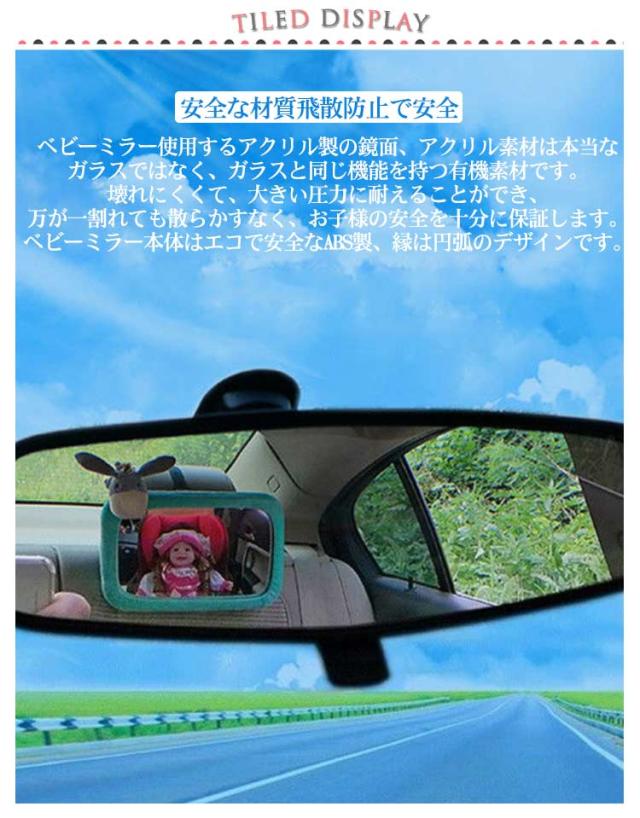 車用 ベビーミラー インサイトミラー 補助ミラー ベビーセーフティミラー かわいい 4色 車内ミラー 後部座席 確認 チャイルドシート 後ろ向き 鏡 ミラー アイコンタクト 360度角度調整 赤ちゃん 子供 ベビー 確認ミラー 飛散防止