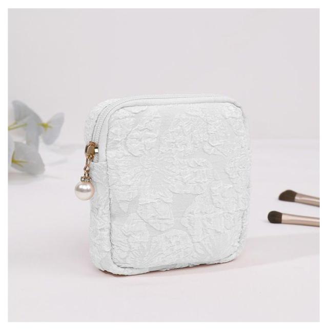| 人気のスクエアポーチに、 ちょっぴりエレガントな仲間が登場! おしゃれなワントーンカラーに、 花柄のようなエンボス加工を施して シンプルながらも華やかなデザイン。 内部の使いやすさはそのままに、 大人っぽいポーチに仕上げました。 | |